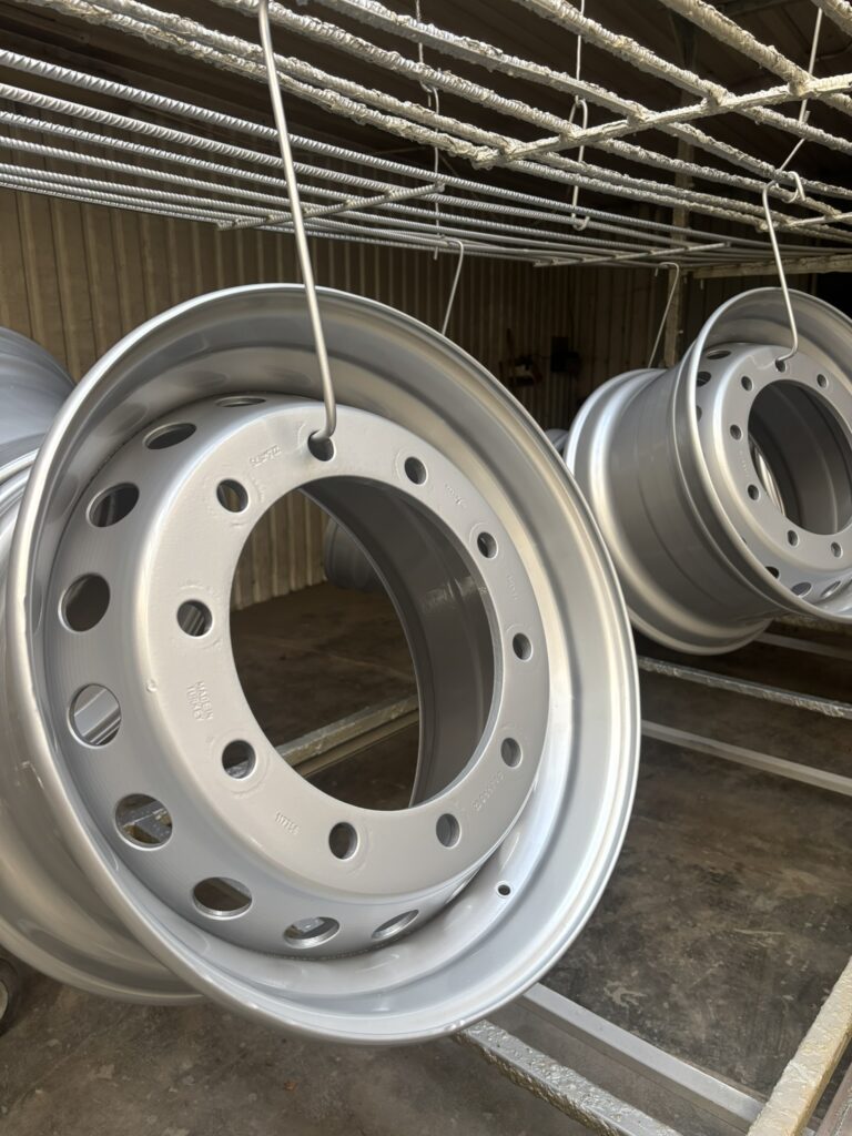 - Nakładanie farby proszkowej – nanoszenie równomiernej warstwy farby metodą elektrostatyczną.